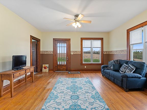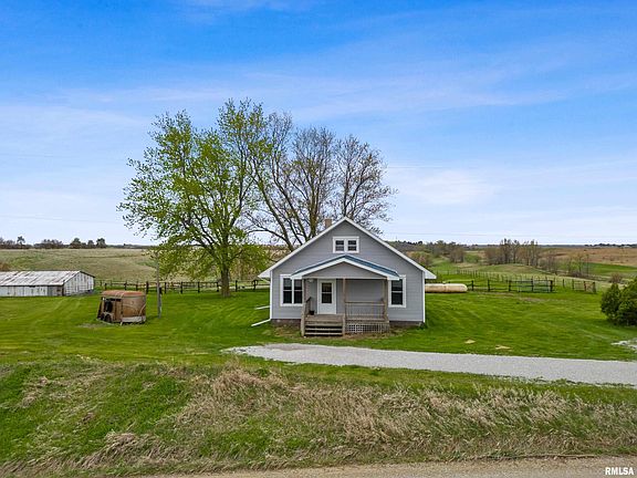 This vintage 2 BR home sits on 5 serene acres outside of Aledo. It showcases beautiful woodwork, floors and built-ins. Siding and roof new in 2022. A porch on front and patio in back provide places to rest & enjoy the beauty of your surroundings! All new windows. New pressure tank and iron filter for the well (rented). The entire pasture has been fenced and is ready for horses! Come experience country living at it's best. Second floor has blown in insulation, but could easily be finished into an additional living space.