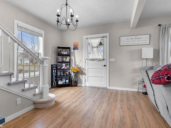 The farmhouse finishes come together to create a warm, welcoming, and timeless aesthetic that combines the best of traditional and contemporary design elements, making the 1.5-story home feel cozy and charming. Three bedrooms on the upper level with a full bath. Main level is open and welcoming with dining area, island in the updated kitchen with stainless appliances. The living room is invited and open with lots space. The lower level is useable and has space to have workout area/ den or rec room. A deck leads to the fenced yard with fire pit and the two car garage complete this amazing home. This home may be eligible for VA assumption of the mortgage.