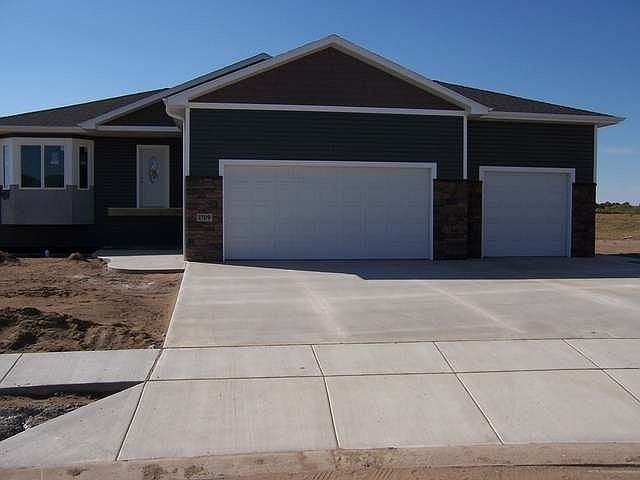 Please take time to look at this new construction ranch home in south Mandan. The home has a great floor plan with 1621 sq. ft. on the main floor. A large master bedroom and master bath with dual sink vanity, walk in closet and tiled shower and flooring.Enter the house from the garage into a laundry-mud-room with tiled floor.The kitchen many cabinets - granite counters and 6 ft island and walk in pantry. Open Living and dining room with gas fireplace and patio door leading to covered porch.A large tiled foyer a covered front porch,second bedroom and a large office complete this floor. The unfinished basement has exterior stud walls up and is insulated. Basement has a walk out to back backyard. 946 sq.ft in garage which is finished and has gas line in for future heater. The home has vinyl siding and stone trim.