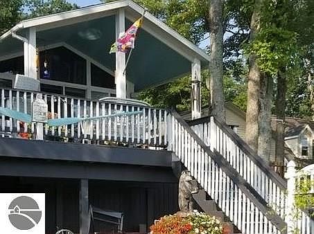 Lake George Lakefront home or cottage with 2 bedrooms and full bath, covered porch overlooking this sandy bottom all sports lake in Clare County. Offers many updates, on demand water heater, windows, doors, plumbing with pex, newer appliances and has a washer and dryer all in one, dishwasher....many perennials, shed, storage under deck, seawall and dock.