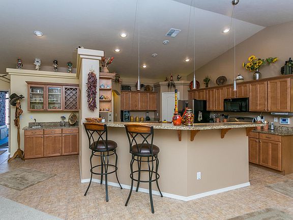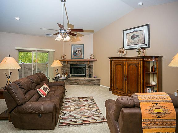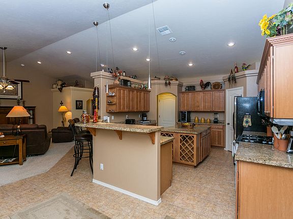 Beautiful three bedroom with vaulted ceilings, open floor plan, lots of tile. Spacious kitchen with granite counter tops, an island with wine racks-storage, stainless steel refrigerator, pantry. Wet bar. Large bay window with cushioned seat. Jetted tub in master bath with snail shower, slate-like tile, very large walk in closet and double sinks. Gas-wood fireplace with Stone face. Fully Landscaped. 3 car garage with built in closets. A must see. List attached to listing with improvements.