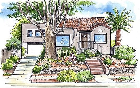 Wonderful natural light and lovely architectural details in this split level, Mediterranean, with handsome tile fireplace, beautiful refinished floors, large picture windows, skylights and expansive master. Garage wint. access, big backyard, many updates and upgrades, including mostly dual pane windows.