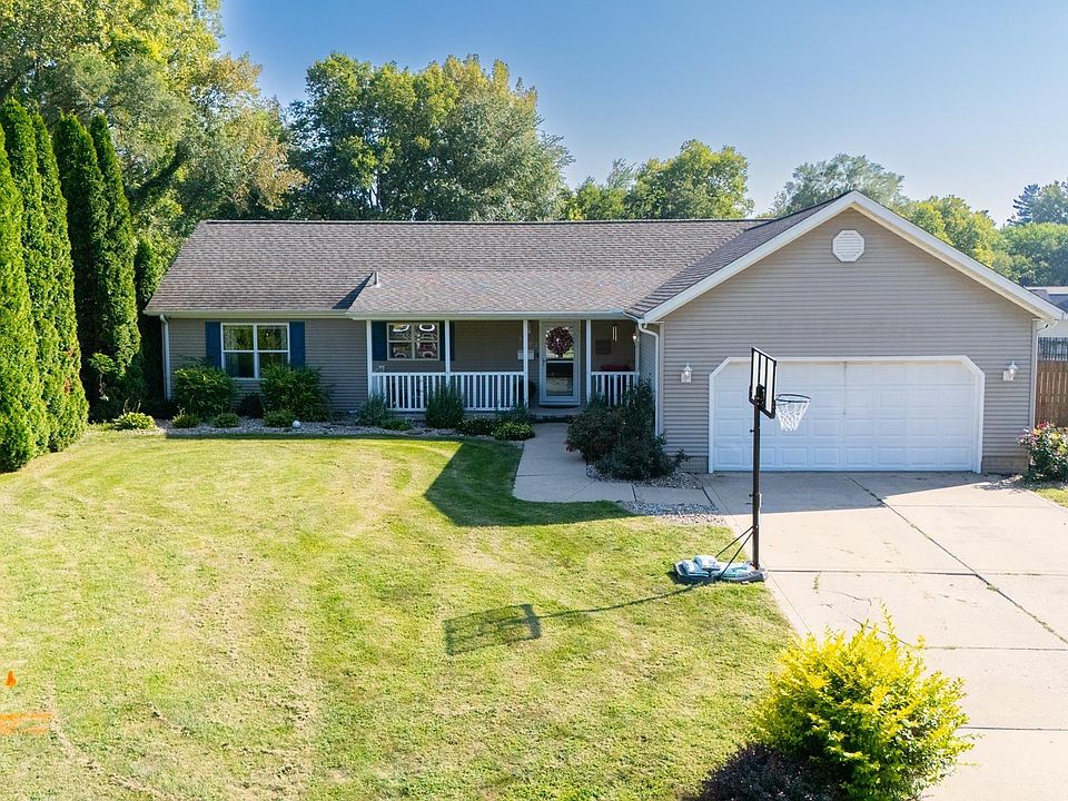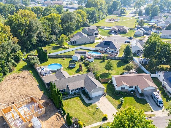 Wonderful ranch home w/ so many amenities!! It's like always being on vacation. Amazing open floor plan, unique breakfast bar w/ beautiful granite countertops, wonderful 3 season room, Primary ensuite (bathroom remodeled 2 years ago) finished basement for entertaining (plumbed for a bathroom), perfect bar area and recreation area, and the outdoor living area is so wonderful!!! Enjoy the 27 ft pool (4 yrs old w/ new liner this year, (pool supplies included) hot tub (4 years old)in the enclosed outdoor space. There is a 12x12 new shed in the fenced in backyard too. Freshly painted, new fixtures, and has new carpet throughout. Deck is only 3 years old and the concrete is only 4 years old. Brand New HVAC system ($15000+) , large playset in year stays too!! This home has never ending storage too!!