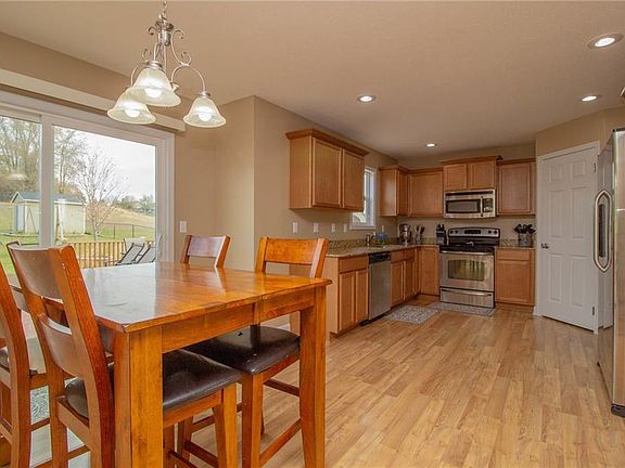The best value found in Granger right now. Located in Twin Eagles Point with easy access to 141 making an Ames or Des Moines commute a breeze. Over a half acre lot which is fully fenced and features a HUGE deck! There is a 3rd car parking pad, which is extra long for a boat or RV. 2nd car parking space in garage is extra long, which makes a convenient shop spot. Shed in backyard stays with the home. 2 apple trees, 1 cherry tree, and garden bed. Inside you'll find neutral paint colors and fireplace in the living room. Kitchen with pantry and tons of counter space. Upstairs you'll find FOUR bedrooms. The master features it's own full bath and walk in closet. The lower level has a fantastic rec room and 3/4 bath. VALUE. VALUE. VALUE.
