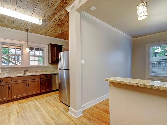 Duplex unit with the look and living size of a house! "Old Enfield" charm completely remodeled with modern accents, updated lighting/ceiling fans/plumbing fixtures! Crown molding, refinished original hardwood flooring, common entry front door, granite countertops, stainless appliances, LOTS of cabinet storage in kitchen, bonus hallway closets, two full and fully-remodeled baths, decorative stone fireplace, large (energy efficient) windows. Rear bedroom has its own wooden deck! Off-street parking.
