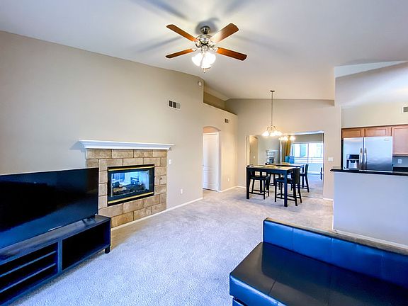1 Bedroom Furnished Condo. Great Summerlin location, kitchen has granite countertops, cozy patio with slider off living room, master bedroom has fireplace, 2 closets, large bathroom with double sinks, roman tub, huge laundry room, community offers a pool, fitness center & sauna. Close to great dining, schools & shopping.