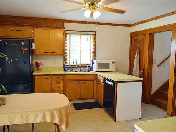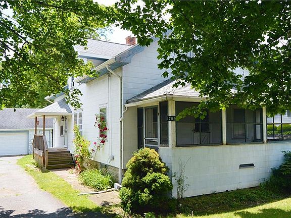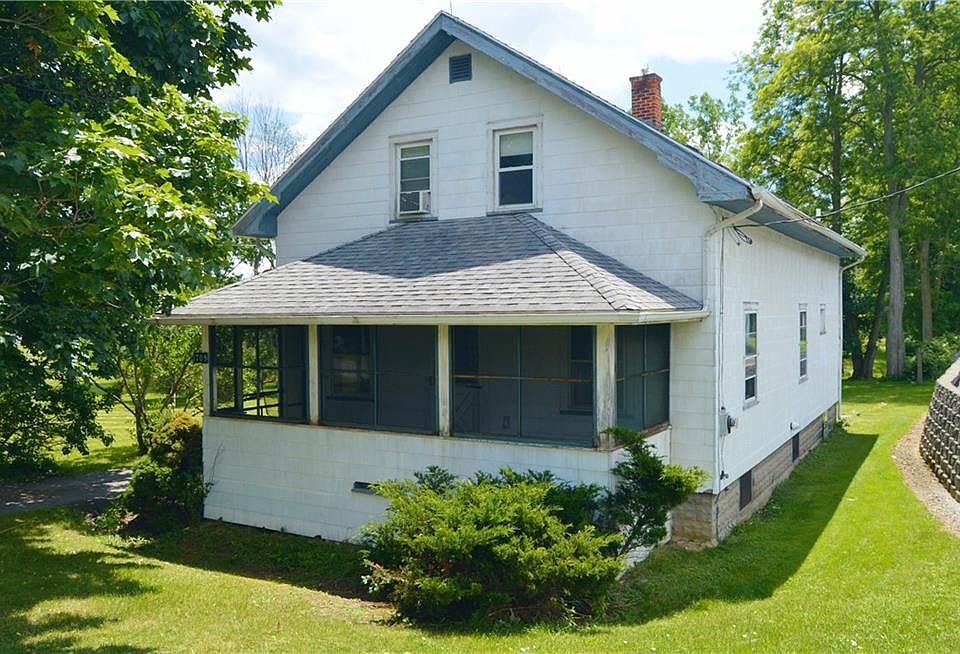Great opportunity in Henrietta NY with desirable location near the Rush-Henrietta High School! Located on close to an acre, this home has potential. An older style home, the charm of the hardwoods and wood trim remain. The eat-in kitchen is large and there's a formal dining room. Two bedrooms await downstairs with large open rooms upstairs as well. A screened front porch, detached 2 car garage and walkout basement as well. High efficiency furnace is only 5 years old. A good deal of exterior maintenance,painting,soffits etc is needed, CASH ONLY AS-IS.