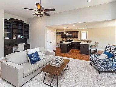 Classic Design Homes Ranch. Spacious floorplan with 1,580 finished SqFt. Open concept kitchen/living room/dining area w/ gorgeous hardwood flooring through kitchen and dining area. Kitchen boasts upgraded maple cabinetry, large island w/ barstool peninsula, stainless steel appliances, granite counters, tile backsplash and large pantry. Sliding glass door off dining area to 12x14 maintenance free deck! Living room and entry w/ 11' ceilings. Gas fireplace w/ floor to ceiling woodwork as well as built-in office desk with bookshelves. Wide style trim throughout. Large master bdrm w/ tray ceiling. Master bath w/ dual bowl granite vanity, tile shower, & spacious walk in closet. Main level is rounded off w/ 3 car garage, drop zone/laundry w/ tiled flooring. Huge 1,558 SqFt walk-out basement w/ stub in for an extra full bathroom. Sliding glass door out to 12x14 concrete patio. 15 Year waterproof warranty on basement. Energy Saving Program w/ 96% Efficient furnace and 16 seer A/C. All of this nestled on large lot with ample back yard space in a desirably tranquil cul-de-sac location in Granger! 1st month FREE on a 13 month lease! Option to purchase at conclusion of lease! Tenant pays all utilities. Contact us to schedule a showing.