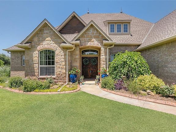 Stunning East Edmond home in attractive Edinborough! Pinterest worthy home sits on a beautifully landscaped lot that is just over an acre. Private gated acreage community in Edmond Schools. Upon entering the home you will notice the study, formal dining and living. Neutral colors and pristine woodwork are found throughout the home. Connected to the living is the custom kitchen that boasts granite countertops and stainless steel appliances, including a commercial Wolf gas range. A hand-crafted sliding barn door leads to the laundry room which includes a sink with folding space and cabinets. The substantial master bedroom lends space for a sitting area overlooking the backyard. Relax in the spa-like master bath. The flexible area upstairs offers a closet and full bath to create an en suite guest or second living. SMART home with app controlled security system, sprinkler system and 3 car garage. Magnificent views, abundance of space and amenities are waiting for you today!