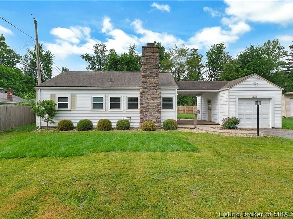 Welcome to your new home in the heart of coveted New Albany! Close proximity to shopping and eateries on Charlestown Road, this charming FOUR BEDROOM residence boasts spacious living areas perfect for families needing that extra bedroom space, or think formal dining! The kitchen has a full complement of appliances and updated butcher block counters and a gorgeous tile backsplash. Other updates are evident in the full bath and light fixtures throughout! Enjoy the convenience of a detached garage, providing ample space for parking and storage. HVAC, water heater and windows have all been replaced and are not original. Nestled in a desired location, this property offers the ideal blend of comfort and convenience. Don't miss out on the opportunity to make this your next place to call home! Sq ft & rm sz approx.