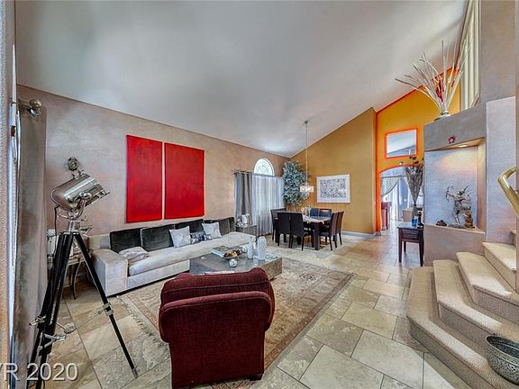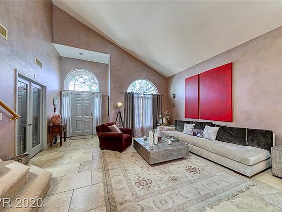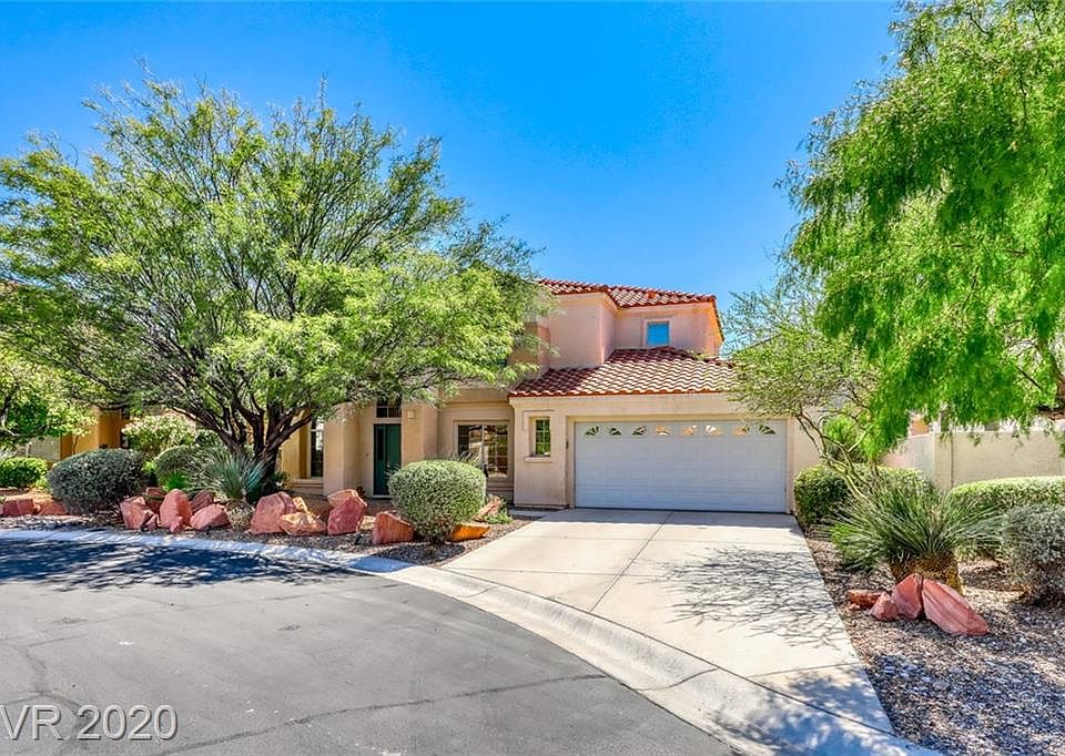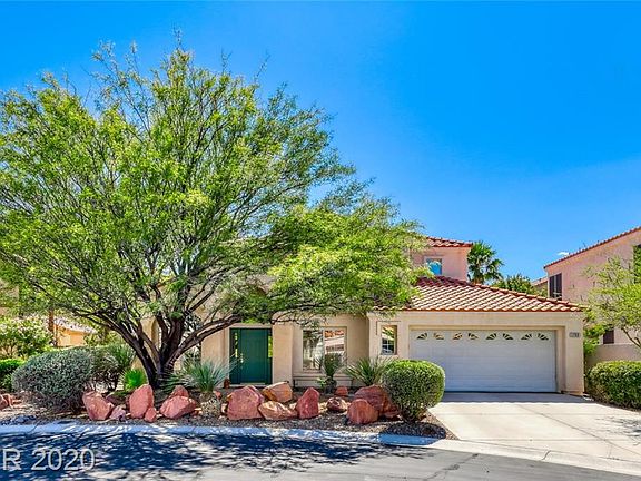 This Summerlin beauty is located in a gated community, on a cul-de-sac and has a pool sized lot. The Master Bedroom is downstairs and the Master Bath features a large soaking tub,walk in shower and walk in closet. Enjoy the tile flooring throughout the living, dining and family room. The kitchen has granite counter tops and plenty of upgraded cabinets. This home is located near great shopping, restaurants and convenient freeway access.