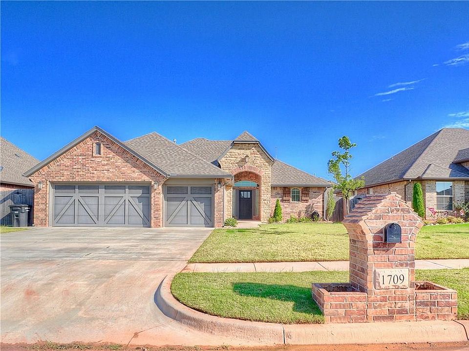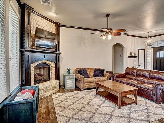 Better than new and meticulously maintained! This 3 bed plus a study, 2 bath, 3 car garage home features an open plan that is great for entertaining! Whether it is holiday dinners or hosting the big game, the open living/dining concept allows everyone to be together in one large space. The beautiful stone fireplace adds to the appeal of the living room. The master suite has a spacious walk-in shower, separate whirlpool tub and double vanities! Additional features such as a study, in-ground storm shelter wood look tile floors, granite countertops and so much more make this the place you will be proud to call home! Step outside and enjoy the nice sized yard with a large covered patio that is perfect for grilling. Don't wait! Schedule your private showing today.