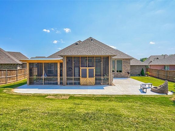 HUSTLE ON THIS ONE! This stunning 5 bedroom, 3 bath home also features an amazing, rare-to-find screened in back porch. Plus, if you're needing 2 masters for multigenerational living, this single story floor plan is perfect for your needs. Kitchen is every chef's dream- luxurious granite countertops, an island for additional counter space, an enormous, walk-in pantry & a wonderful breakfast bar to serve up your gourmet dishes. Additional features:a pot filler, stainless steel appliances & double ovens. Soaring 12 foot tall ceilings & large, picturesque windows make this open floor plan feel welcoming & provide an abundance of natural light. Hang out watching movies or playing pool in the game room. Enjoy spending time outside while avoiding bugs in the screened in back porch. At 220 sq. feet, it's spacious enough for the whole family! A tankless water heater is being installed next week. Other highlights:fire pit, storm shelter, wood floors, arched doorways & fantastic Edmond schools.