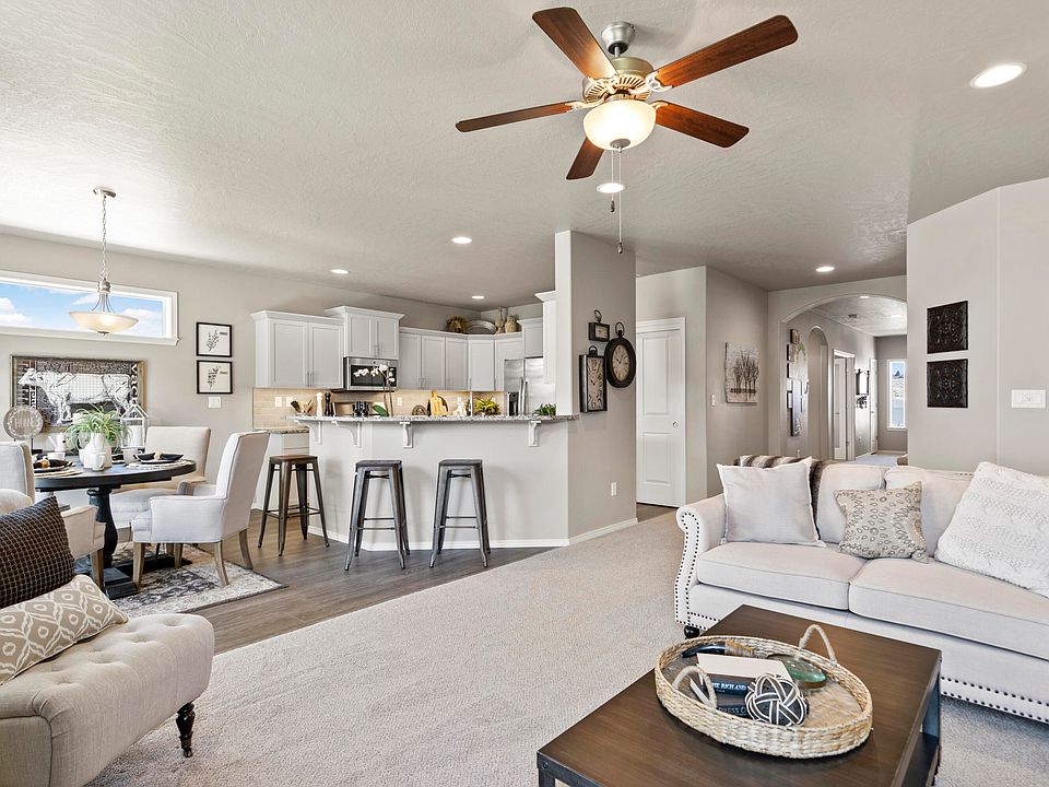 Adjacent to premium established neighborhoods boarding the Dry Canyon trail system. With time to still choose your interior selections in your home. The 1574 square foot Hudson is an efficiently-designed, mid-sized single level home offering both space and comfort. The open kitchen is a chef's dream, with counter space galore, plenty of cupboard storage and a breakfast bar. The expansive living room and adjoining dining area complete this eating and entertainment space. The spacious and private main suite boasts a dual vanity bathroom, optional separate shower and an enormous closet. The other two sizeable bedrooms, one of which may be converted into a den or office, share the second bathroom and round out this well-planned home.