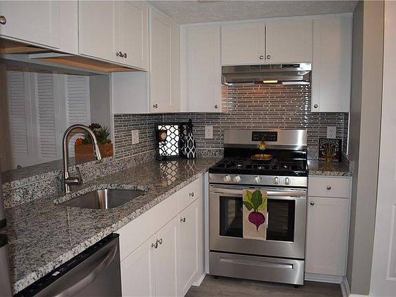 - Kitchen Features: Breakfast Bar, View to Family Room, Stone Counters, Cabinets White