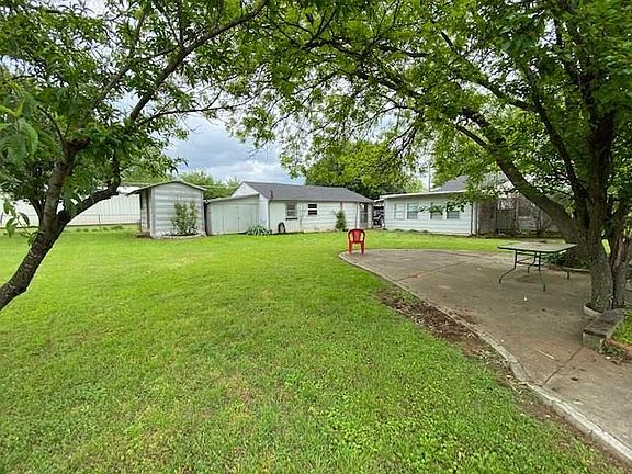 Cute 2 bed, 1 bath farm house with original hard wood floors. Kitchen has new stainless gas range and stainless refrigerator. Master has 2 closets. Bathroom with marble countertop and tiled walk in shower. Large front porch, oversized garage with storage room & built in shelving at back of garage, 2 additional storage buildings, garden house with sink, raised bed gardens with sprinkler system, 3 peach trees, 2 pear trees and 2 pecan trees. Large open shaded concrete patio great for BBQs or just relaxing.