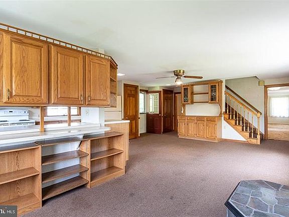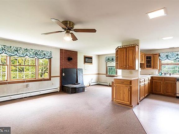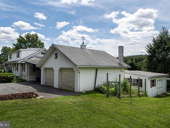 Large home on almost 1 2 acre. Front and rear porch, oversized detached two-car garage, several outbuildings - One has a makeshift workshop. The country kitchen is immense and has plenty of cabinets and storage space. One of the listed bedrooms on the second floor is not private. The basement has a second kitchen and a separate family room with a woodstove. There are over 4, 000 square feet of finished space in this home. Check out the photos. Home is being sold as-is.