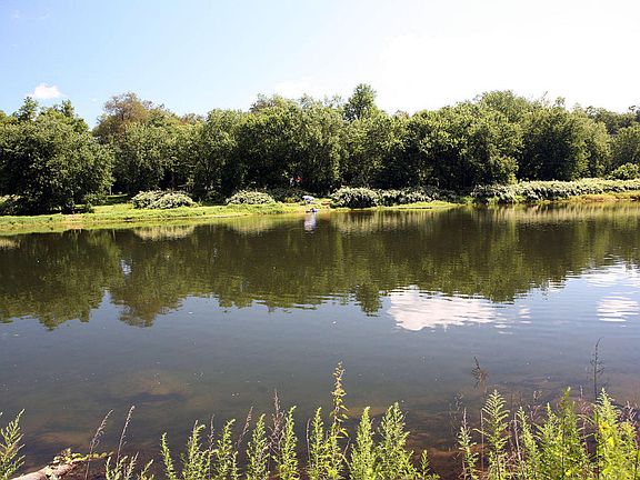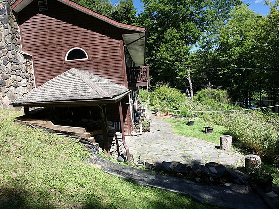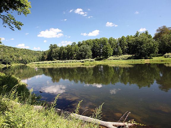 This contemporary ranch offers a pretty view of the Delaware River from its perch on the Damascus, PA riverbank. Watch eagles and ospreys from the patio, fish or launch your boat from the shore. The 1.67-acre lot fronts on a nice, calm eddy upstream from the Cochecton-Damascus bridge, so you can splash and swim in gentle waters. The house is solid with sliders and windows positioned to take advantage of the river views; you'll see water from the kitchen, dining area, living room, bedrooms, and den -- not to mention the balconies off the second-floor rooms. With 4 bedrooms and 3 full baths in 2,860 square feet, the house accommodates family and friends. A covered stone patio gives shelter for outdoor cooking and entertaining, and flows seamlessly to the open patio.
