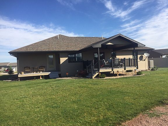 The gorgeous curb appeal and the backyard views from this home are stunning! You will find this property neatly manicured and landscaped with a huge enclosed garden area in the backyard. The sunrises and sunsets you will see from this covered back deck are stunning. The beautiful sights of Crow Peak, Spearfish Mountain and Lookout will be right out your back door! The inside finishes of this property are just as fabulous. There are hardwood floors, tile in the bathrooms, plush carpet in the bedrooms and basement area, vaulted ceilings, open concept floor plan, mud room with built ins for organization, oversized garage with shelving and work bench area, true master suite which includes, large walk in closet, jet tub and a custom tile shower and abundant light shines through the many windows. You can enjoy approximately 3,800 sq. ft. of quality finished inside space all through the year and relax outside during the nice months and relish the views! You must take a look at this beauty!