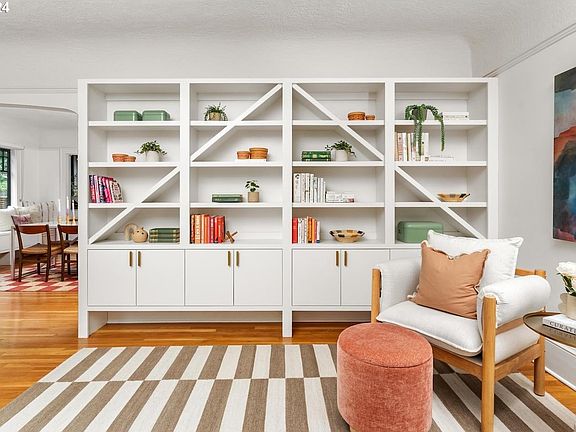 Introducing the Swedish Bungalow, featured in HGTV Magazine, Portland Monthly and Apartment Therapy. Super swoon-worthy, this light-filled home with Scandinavian touches throughout is located in the too-hot-to-handle Richmond neighborhood. From sun-drenched open rooms to bespoke built-ins throughout, each nook and cranny of this home has been updated with care. At every threshold a new oasis awaits, from a lovely livable backyard to a home studio to a basement apartment. The main floor flows with connected living + dining + kitchen, two bedrooms and a bathroom. The living room features a cozy fireplace with built-ins, alongside a second area designed as a library/whiskey lounge, perfect for quiet reading and intimate conversations. The remodeled kitchen opens up to a large deck with stadium seating leading to a covered outdoor dining area & hang-out space. The lower level can be accessed from the home but also has a private entrance. This space has everything needed to host friends and family or serve as your very own retreat including a TV area, dining area, kitchenette, full bathroom and a family-style bunk room that sleeps 4. The gated driveway provides parking for an RV, though it’s mostly used for bikes, scooters and games of pickleball. Commute 10 seconds across the lawn to The Studio, your work space "away" from home. This garage conversion was completed in 2019 and features hardwood floors, exposed beams, and skylights that making it a fantastic creative space. Recent updates include gas furnace, heat pump, AC, water heater, roof, French drains and much more. Walk Score of 95 and a perfect 100 Bike Score means you have options of where to eat & drink. Our suggestion: Stroll over to Common Grounds for coffee, Whole Bowl for lunch, Kure Juice bar if you're on a health kick and Gigantic Brewing if you're not. For dinner, choose between Por Que No or Apizza Scholls or walk down to Division Street to have your pick of some of Portland's best eateries.