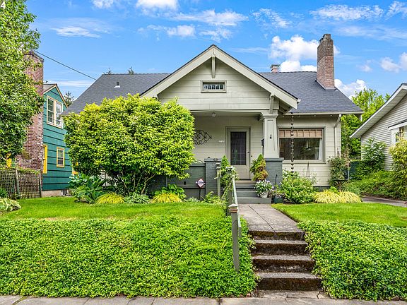 Don't miss this exquisite Craftsman bungalow on a quiet residential street between Hawthorne and Division. A lovely oasis in the heart of SE this home has phenomenally walkable access, a location that can't be beat! This delightful home perfectly blends historic charm with modern updates and provides a truly unique and tranquil feel. Main floor living area flooded with light, including dining room with direct access to a lush and vibrant setting. French doors and side light panels that overlook stunning private yard and garden. Two bedrooms and bath on main. Spacious, private primary suite upstairs. Kitchen has been tastefully updated with contemporary amenities while retaining its classic charm. The lower level features a versatile flex/bonus space for a home office, gym, or entertainment area. Step outside to your own private oasis with a beautifully landscaped backyard, ideal for relaxing or entertaining. Stroll to Mt Tabor park. [Home Energy Score = 4. HES Report at https://rpt.greenbuildingregistry.com/hes/OR10228118]