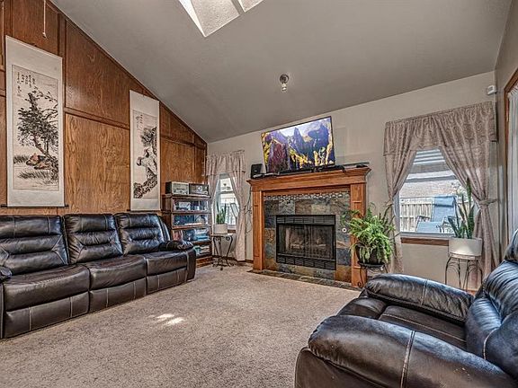 Very well-maintained 3-bedroom, 2-bath home in the Carl Albert School district! New windows throughout the house. Wonderful layout with a large, open living area and fireplace. The kitchen is bright, with a vent hood and plenty of cabinets. The primary bedroom is a good size and has an en suite. Both secondary bedrooms are spacious and have walk-in closets. The upstairs features a great bonus room with lots of built-ins. Beautiful backyard with a large wood deck and a covered patio. Storm Shelter. Conveniently located near Tinker, Boeing, and I-40. Assumable VA loan with a 2.5% interest rate