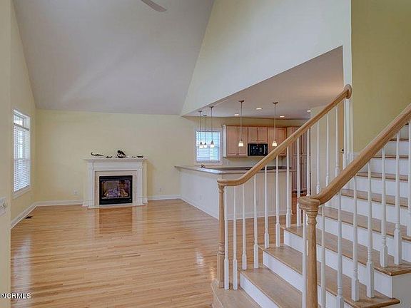 This lovely cottage-style home is located in the desirable Kure Beach neighborhood of Tuckers Square (no HOA fees!), & out of the flood zone. Facing the federal land/maritime forest, this home provides beautiful views & peaceful serenity, but is still just a quick walk to the beach and close to the new Island Greenway Bike Path. The main level boasts an open-concept floor plan w/beautiful hardwood floors, plenty of lovely windows to let the light in, & a soaring vaulted ceiling. The large living room features a gas-log fireplace w/custom mantle surround, & is connected to the spacious dining room area. The gourmet kitchen is adjacent to both, with its huge L-shaped island/breakfast bar, new Samsung black stainless appliances, pantry, custom cabinetry & breakfast room/built-in office area.