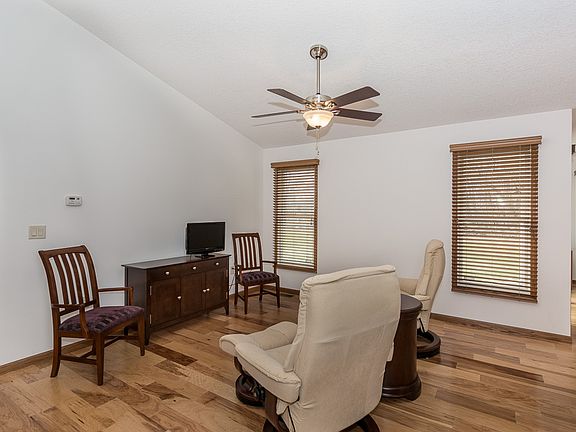 Built in 2011 and designed for "aging in place", this home offers zero clearance entries with one floor convenience. This like new ranch is located on a private road, close to nearby 53rd Street for convenient access to multiple businesses, health care, interstates, and city wide travel. The main level is primarily hardwood floored, with premium vinyl in baths, kitchen, and laundry. Stairs are carpeted. The great areas and kitchen have cathedral ceilings. Ceiling fans are located in the great areas, bedrooms, and kitchen. The master and second bedrooms, master and second baths, and laundry are on the main level. The kitchen features laminate counters, stainless steel appliances, pantry, breakfast nook and breakfast bar. All appliances stay with the home. The master bedroom has a conventional ceiling, walk-in closet, and master bath with cultured marble vanity top and one piece zero clearance walk-in shower; while the second bedroom has a conventional ceiling, walk-in closet, and adjacent second bath with a one piece combination tub/shower. The basement has egress windows with pit, and rough plumbing for an additional bathroom and/or kitchen, providing for an array of future uses. Insulated basement walls, in addition to energy efficiency construction practices throughout the home, have resulted in monthly utility bills averaging well below a hundred dollars. The house and yard are privately owned with an association in place for the common areas of the development. Association benefits include lawn care, snow removal, and an enhanced sense of community. The $100 monthly dues are paid through 2019. Outside you'll find a spacious and convenient patio overlooking the back yard with mature trees beyond.