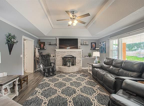 Updated one level living with a GREAT location. Seller has done the work so you can just pack your bags and move on in. Enjoy viewing stunning sunsets from your front porch. All three bedrooms are nice sized. Most main level flooring less than a year old. Garage has room for a work bench. Lower level is finished with another fireplace in the family room, and the rec room has a bar that stays with the property along w/a pool table. There is still storage room. Jump on the walking trails, go watch a HS game (or listen from the porch), pickle ball courts are very close.