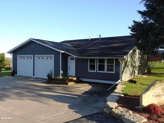 Nestled in the hills of Jo Daviess County, between Stockton and Woodbine, lies Valley View Estates Subdivision (All C&R's were nullified in 2006 by majority vote of then property owners - See Nullification Record in Associated Docs). There you will find, believe it or not, a 7.22+/- acre FARM complete with a tri-level, 3 bedroom 2.5 bath, partially remodeled home with master suite, living room, family room, country kitchen, dining room, office, storage room, large laundry/mud room on the walk-out lower level, an enclosed front porch, a two-car attached garage, private well and septic, and a constant pressure 60 PSI water system for ease of grooming the show livestock. The house has a wood foundation and has been plumbed for a central vac. This home features a panoramic view of the surrounding countryside and overlooks the approximate 3+/- acre cornfield and numerous out-buildings for livestock, equipment, and storage on this amazing 7+/- acre FARM property. New hi-efficiency furnace installed in 2014 has air cleaning system; new composite trim on house exterior in 2015; most windows replaced in 2017. 85 x 24 calf barn and 5 bay bull barn are among the many out-buildings. If you want an affordable FARM, this one is for you. Taxes based on OOE.
