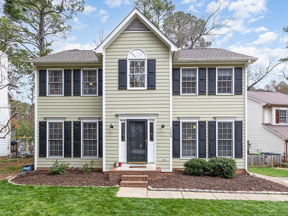 Nestled in the heart of one of North Raleigh's prime residential communities, this impeccable Tealbriar residence will serve to both inspire and delight. Conveniently located on a quiet cul-de-sac, you're merely steps away from Millbrook Exchange Park, North Ridge Country Club, Shopping, Dining, and so much more. Upon entry, allow yourself to be greeted by a proper foyer with soaring ceilings and curated light fixtures. As you proceed through the home, you'll find a lovely formal dining room with divided lite french doors welcoming you on through an updated entertainer's kitchen with granite countertops, painted wood cabinetry, and modern appliances. Open to the kitchen is space for a cozy breakfast nook and expansive Family Room - flooded with natural light and graced with gleaming hardwoods. The formal living room makes for pleasant sitting room or private office with custom built-ins and french doors. Traverse the staircase to the second floor and discover three generous bedrooms with plush carpeting, ample closet space, and a stunningly refreshed primary bathroom. Laundry en-suite to the primary for convenience and privacy! Fenced in back yard overlooking HOA maintained natural area with wooded views. Dual Zone HVAC replaced in 2022. Roof covering 2016. You don't want to miss this incredible opportunity to own a true masterpiece of a home!