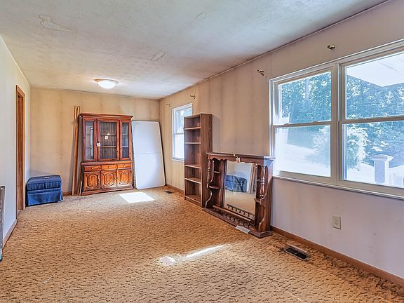 Basement Rancher on 1.9 acre, pie shaped lot in cul de sac. Has so much potential. 3 BR plus two bath on main. Hardwood floors in two front bedrooms. Wood-Burning Fireplaces in den and basement Rec Room. Two-car garage. Two detached sheds with concrete floors and electricity. The larger shed is metal.