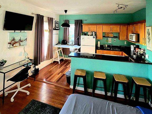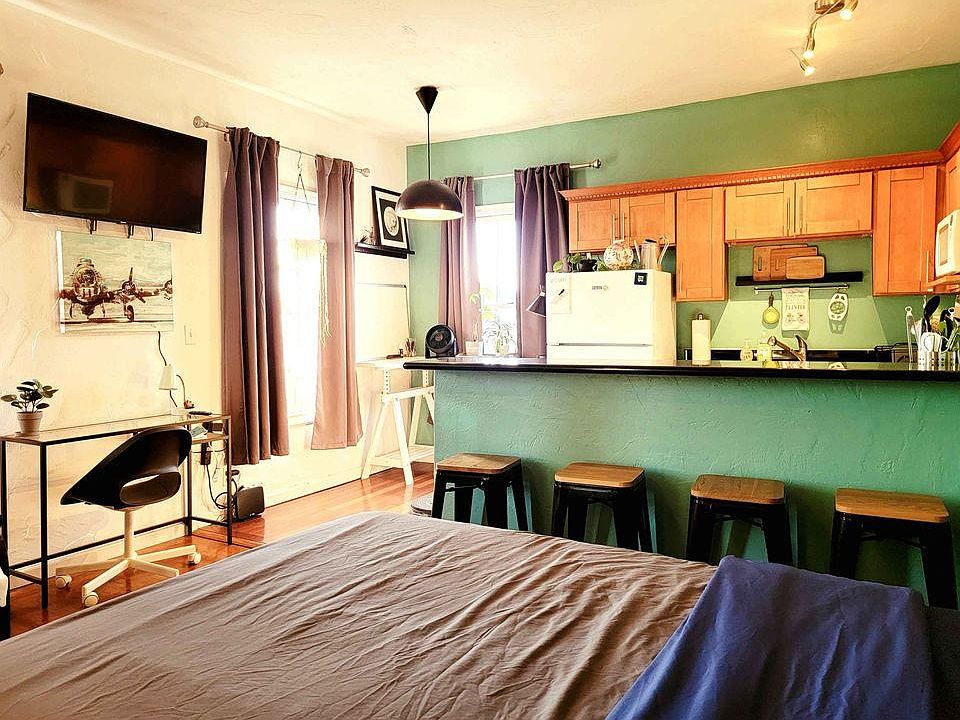 Subletting my fully furnished work/live studio in Berkeley for 6 or 9 months with the potential for a longer-term stay while I travel for work. This is an open space with lots of windows, lighting, and bright clean colors. Full private bathroom shower/tub combo and full kitchen with breakfast bar, gas stove/oven, fridge, microwave, lots of storage! Washer and dryer in building, quarters to operate. I mostly use the space for work but will be leaving my queen bed with a bookcase, dresser, and standing desk, basic kitchen/cookware, and bar stools - move-in ready for a student or young professional!! Huge closet and extra storage available. ALL utilities electric, gas, water, and Gig Sonic internet included in rent! Super walkable, incredible location with Trader Joe's, Target, Kava Bar, tons of coffee shops, restaurants, all of Downtown Berkeley within blocks. UC Berkeley 10 min walk straight up University Ave. Two blocks from Ohlone Park with the community garden, dog park, recreation area. 4 blocks to North Berkeley Bart Station, 6 blocks to Downtown Berkeley Bart! Call or email to set up apt to visit. One-month deposit, minimum 6-month sublease.