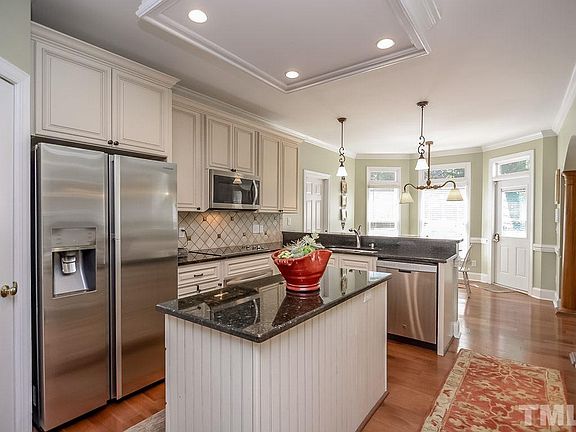 PRICED TO SELL! Beautiful brick home on a Cul-de-sac in desirable North Raleigh! Landscaped, almost full acre fenced yard and lots of mature trees. Large deck with gas hookup and screened in gazebo for outdoor dining and relaxing. Professionally updated gourmet kitchen includes double oven, warming drawer, SS appliances. Also features downstairs guest bedroom with updated full bath with linen closet, office with French doors, fully customized crafts/flex room. New paint and carpet. PREM. warranty incl.