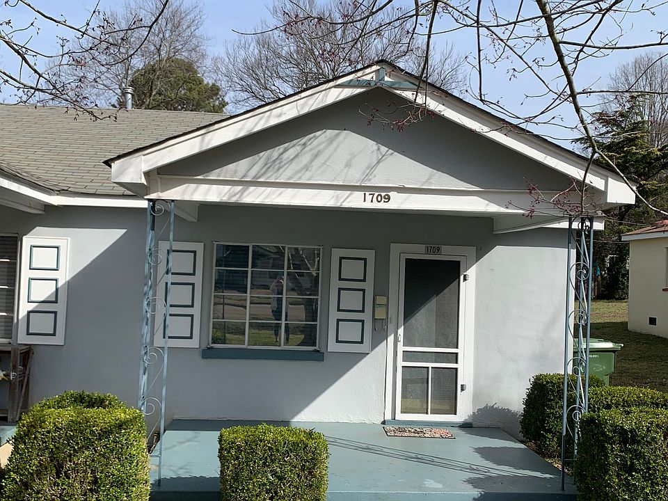 One bedroom apartment duplex apartment in the 5 points neighborhood. Super convenient to downtown Huntsville and the excellent Monte Sano state park. The apartment features laminate flooring with carpeted bedroom, large tiled kitchen with plentiful cabinets, gas heat, window unit AC and a charming private front porch.