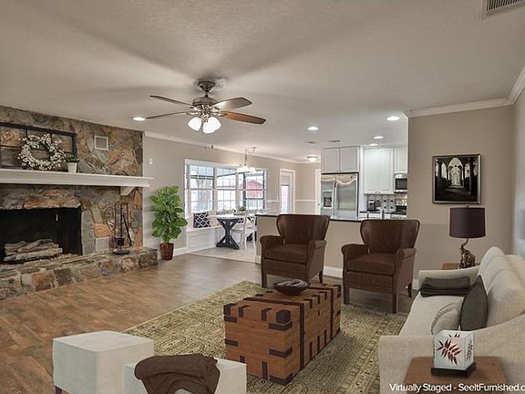 CHARMING SOUTHERN HOME in Plant City! This gorgeous brick home is surrounded by grand oaks and an acre of well maintained property. The house features new double paned glass windows, crown molding, a 30 yr roof that''s only 1 yr old, wiring for a sound system, all new paint throughout, barn doors, and a lovely front porch. As you walk in the front door, you are met with a hall that opens up to a large dining / living room combo. The galley kitchen features stunning stone flooring, bright cabinets, a tile backsplash, stainless appliances, and a huge sink. Adjoining the kitchen is a breakfast nook with 4 twelve pane windows and a window seat with storage. Continue into the family room and you will find a huge stone fireplace to gather around with family. There are 3 large bedrooms, one of which has built in storage that would be perfect for a home office or craft room. The master and one of the bedrooms have a walk in closet! The bathrooms are equipped with full showers and plenty of counter space. The bathroom is accessed by a rolling French door and has a separate shower and tub, great for relaxing in after a long day! There is also a laundry room with cabinets for storage and counter-space for working. The backporch is screened in and is the perfect place to sip sweet tea and watch the sunset or the family play in the yard. There is a huge paved driveway as well as a good sized utility shed. This home is perfect for someone looking for country living in the heart of Plant City!! Come see it today!!!