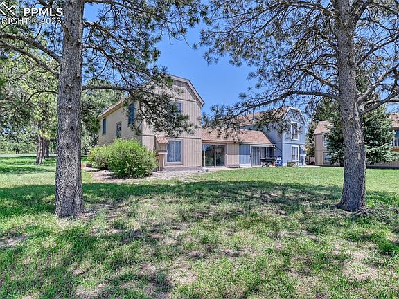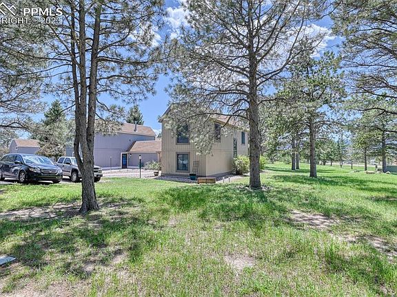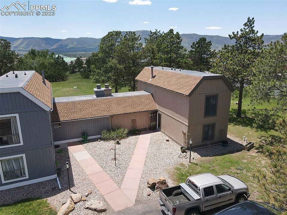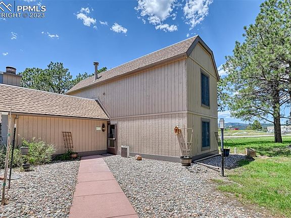 Welcome to this delightful end unit with a bright and sunny floor plan that will instantly make you feel at home. Step out onto the patio and take in the beautiful grounds, surrounded by mature trees and plenty of open space for you to enjoy. Prepare to be captivated by the stunning views of Pikes Peak and the majestic mountains, which can be admired from the Great Room, Patio, and Bedroom. The main level Master Bedroom boasts an updated Bath, ensuring your comfort and relaxation. The spacious Kitchen features beautiful Maple 42" cabinetry and modern appliances, making it a joy to prepare meals and entertain guests. You'll also appreciate the top-quality Anderson vinyl windows that have been recently redone, adding both style and energy efficiency to the home. The Great Room is adorned with built-ins and a cozy wood-burning fireplace, creating a perfect space for relaxation and gathering with loved ones. Conveniently located directly across from the front door, the oversized detached 2-car garage offers ample space for your vehicles and storage needs. In addition to its charming features, this property benefits from bedroom closets that span the width of the rooms, providing plenty of storage space. Its ideal location places you within close proximity to a middle school, fire station, library, gym, and a variety of shopping and dining options in Monument. With easy access to I-25, commuting and exploring the area becomes a breeze. No Dog breed restrictions. Don't miss the opportunity to make this welcoming and comfortable end unit your new home. Schedule a viewing today and discover the perfect blend of tranquility, convenience, and picturesque views that await you here. New Carpet,