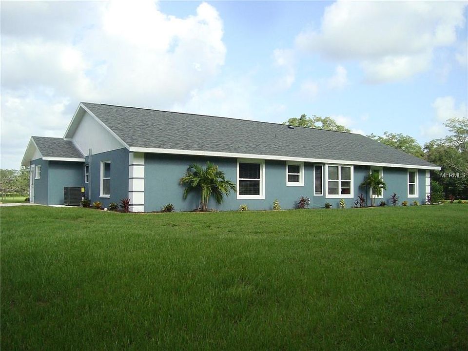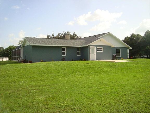 Outstanding 4 bedroom, 2 bath block home on 5+/- acres with caged pool. Gorgeous acreage with 4 horse stables, round pen, fenced and crossed fenced. NO HOA, NO DEED RESTRICTIONS!! Home looks brand new. Home has been meticulously remodeled and updated with new roof, new 5 ton central a/c, new porcelain tile floors, new upgraded carpet (in 3 of 4 bedrooms). New kitchen, new stainless appliances, new granite counter tops. The kitchen has an 11 foot bar top plus an island with additional seating. Master bathroom has dual sinks with granite counter, seating area and a huge shower. Wood burning fireplace. The caged inground pool was completely redone with new pebble crete surface, new coping and new tile. Pool cage was completely re-screened. Home is handicap accessible. Most doors are at least 36" wide and the master bathroom shower will accommodate a wheelchair. 2 car garage floor has been upgraded with a custom epoxy surface. The 4 horse stables are in great shape and feature water, electric, R/V hook-ups and extra covered parking/storage. Property is close to shopping and schools. Only 4 miles (6 minutes) to Publix, Walgreens and many restaurants. Only 6.3 miles (9 minutes) to I 75.