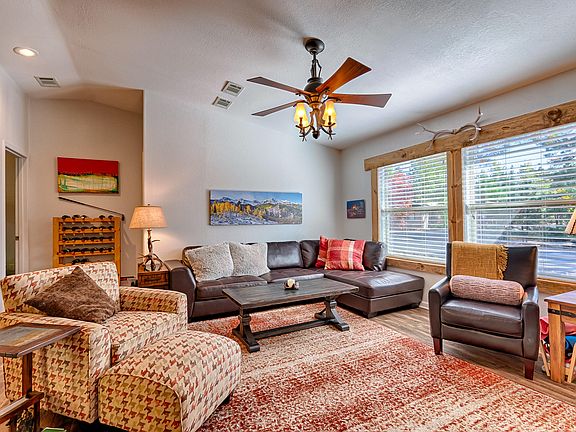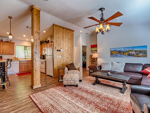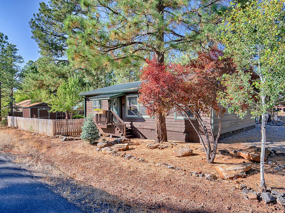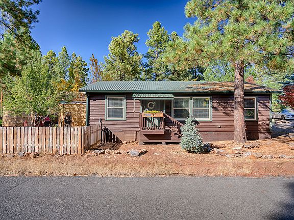 Don't miss this gorgeously updated Munds Park home! The look of a log cabin in the woods, this home sits on a corner lot near the National Forest. Current owner has really made this something special that you will love. A few of which include interior touches like wood trimmed windows and accents, barn door on master bathroom and laminate wood floors. The great room has the kitchen opened up to flow into the living room. The split floorplan offers privacy in the master. Includes Central AC! Of course Munds Park is all about the outdoor living space, and this home does not disappoint. Lovely privacy walls strategically placed near the hot tub and seating areas. A large open deck to enjoy the fresh mountain air. Or enjoy the covered deck area that makes a cozy sitting area. (See more...)