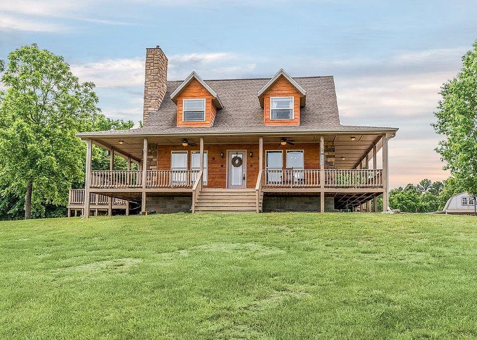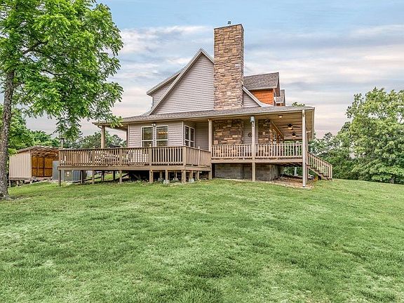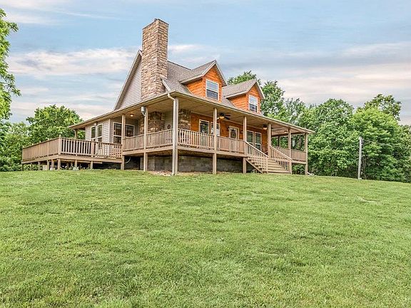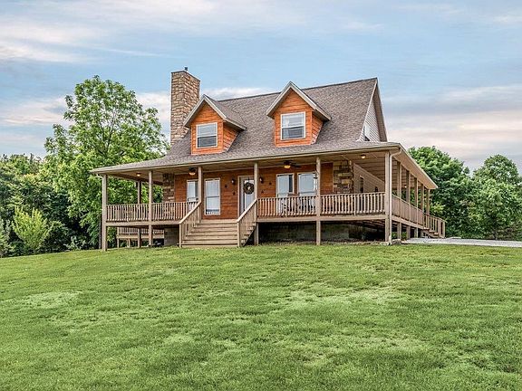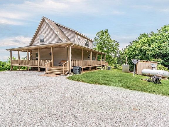 Cabin style home, high on the hill with beautiful Northbound views. There is a winding driveway that leads to the home with wrap around porch, stone chimney, and cedar covered dormers. Quaint living spaces include a master suite, living room with wood burning stove, kitchen with island and dining space, loft, and 2nd bedroom with full bath. Detached building with livable room, workshop, and garage space. 9.95(+/-) acres of privacy and beauty!