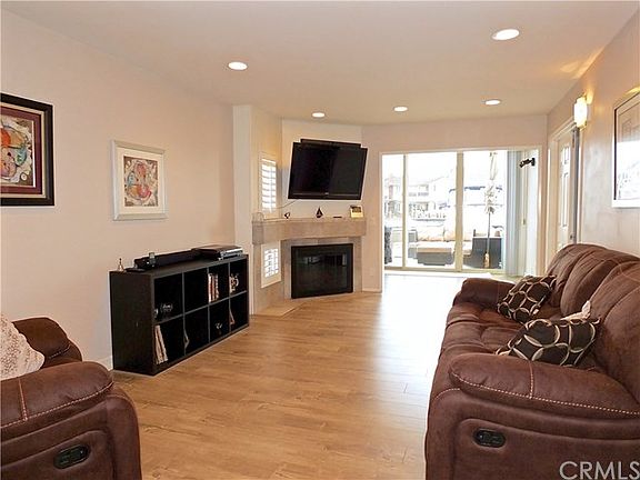 Waterfront Huntington Harbor Condo! Water front property with your own 45 ft. boat dock- just steps from your patio! This turnkey ground level condo is ready to move into! Beautiful vinyl plank flooring, smooth ceilings, new base molding & lighting. Spacious living room boasts a gas fireplace & has additional space that can be used as an office/workout room. Chef's kitchen w/ lots of counter & cabinet space- all new SS appliances, stone countertops, glass tiled back splash, soft self-closing drawers & cabinets. Laundry area off of kitchen w/ full size washer & dryer and room for a breakfast nook. Dining room has view of the water & green belt. Large master bedroom has two sizeable closets & shares the amazing water views. Beautiful remodeled bathroom, dual paned windows & plantation shutters too. Large outdoor patio with gas BBQ connection. 2 assigned parking spaces #130 & #126 plus a storage cabinet This home offers everything the avid boater and beach enthusiast could ask for. Walking distance to Bolsa Chica Wetlands, the beach, boat launch ramp, HH yacht Club & restaurants. This community features a guest boat dock, 2 community pools, spa, clubhouse, gym & tennis/basketball court. HOA includes water, cable, internet, garbage, landscaping & insurance. This location at the water's edge in one of the few 4 unit complex's w/ green belt in front & water view from the side & back of home! Check out the amazing floor plan!