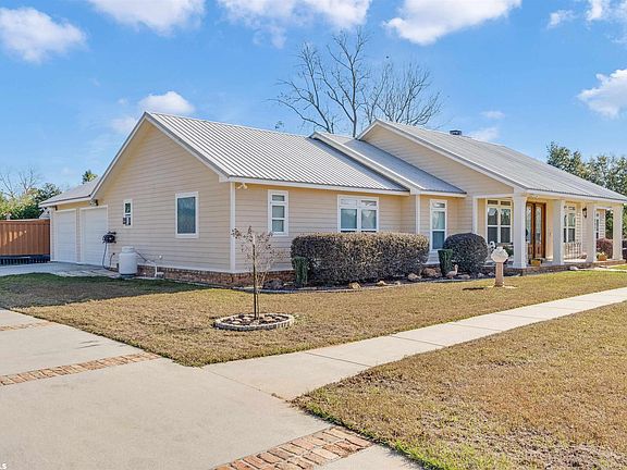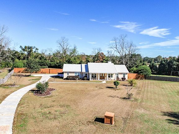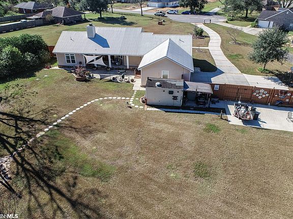Quiet, elegant, country living on one plus acres near Gulf Shores & shopping can be yours. This custom home builder spared no expense on materials, design features, appliances, amenities & finishes. The open, split floor plan is well thought out with natural traffic flow. The 8-foot double front doors & 8-foot triple back doors plus the 10-foot ceilings with double trays in the great room make this home live large. There is also a plethora of recessed, can lights throughout the home for controlled lighting. The large master suite features a huge walk-in closet with built in cabinets, a jetted garden tub well-lit by a leaded glass window and dimmable chandelier. The separate shower has 3 shower heads & a bench seat for safety & comfort. All tubs, showers & toilets have elegant, custom, built-in handicap grab bars. The kitchen is a cooks delight with all Bosch appliances, gas cook top, vegetable sink, custom cabinets, tons of granite counter space, glass tile back splash, pull out appliance cabinet & a serine view of your huge private back yard & covered porch. And for your home office needs a small built-in desk & office space backs up to a kitchen wall. Your guests, teenager or in-laws can enjoy their private suite on their own side of the house. They would share a jack & jill bath with the third bedroom but would have their private entrance coming off the covered back porch. Both of these 2 bedrooms have built in office cubbies. The entire home has an abundance of outlets, more than code calls for. It also has a hard-wired security system & sound system throughout the entire house & covered back porch. All floors are hand scraped hickory except the wet areas which are 18" ceramic tile. There is lots of storage in the garage and plenty of decking overhead with two access doors. Also included is the 10 X 16-foot storage shed with power & water. This home has a well & a septic system, so you won't have those water and sewer bills. The entire property is fenced.