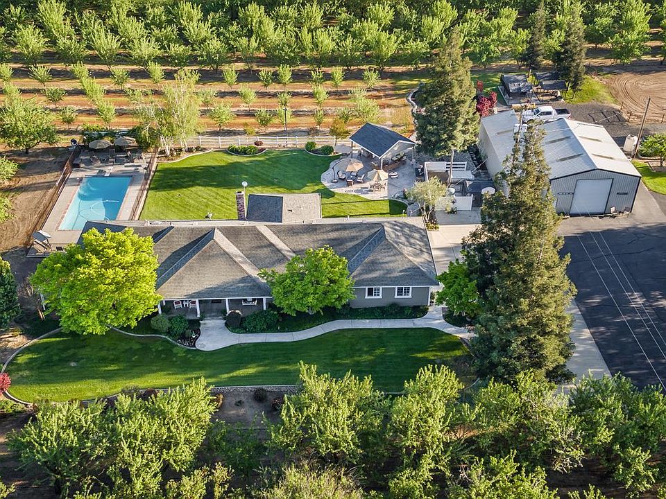 Stunning country property on 18 acres tucked back in almond trees wonderful kitchen granite counters, breakfast bar, kitchen nook and formal dining room. Bright sun room perfect for morning coffee.Additional office with storage Amazing mature landscape, large gated pool with safety cover. Two workshops/RV storage open pasture for animals. Short drive to HWY 99 and HWY 120. Call for your private viewing.