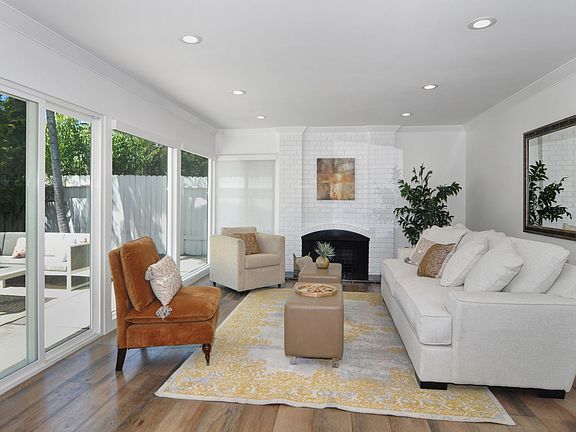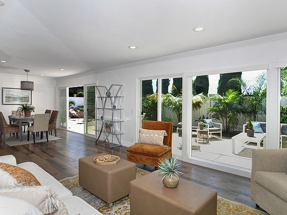 Chic sophistication abounds from this this Mid-century modern home In Huntington Harbour. The immaculate property showcases sleek and contemporary design features in a spacious and welcoming single-story house. Upon entry, this home radiates tranquility through a cohesive blend of neutral on-trend colors and fixtures including pendant lighting, marble, and crown molding. The open pitched ceilings boasting exposed beams and windows allow for loads of natural light to come in. The home has been remodeled throughout, featuring a bright and airy open galley kitchen with upgraded appliances and an extra long island, ideal for entertaining and meal preparation. Enjoy three guest bedrooms and a stunning master retreat, boasting two finished closets and a steam shower. Each space has been carefully crafted, from the wood floors, to the shaker paneled closets and doors to the custom tile. The well-manicured backyard features lush tropical foliage juxtaposed against a drought conscious concrete and stone patio. This property is a short walk to Harbor View Elementary School and excellent shops and restaurants at the Huntington Harbour Plaza. This home is truly turn-key and move-in ready.