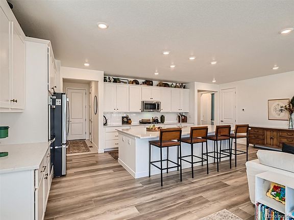 Welcome to your SUPERHOME! This almost brand-new Lennar home features a private NextGen suite for convenient shared; yet separate living. This beauty is loaded with upgrades and perfect for those wanting new construction without the wait! Check out the quartz countertops, wide-plank luxury vinyl flooring, and stainless steel appliances (hello double ovens!). The incredible NextGen suite comes complete with its own kitchen, living room, bathroom, bedroom, sitting room, laundry room closet, and private entrance! Don't miss the third car garage that enters through the NextGen suite. The sprawling covered back deck is perfect for summer BBQs and your morning coffee; overlooking open space for a nice private feel. Sod will be installed by the builder in the next few weeks. Upstairs you'll find a spacious loft-- perfect for a playroom or teen lounge. Also upstairs are four sizable bedrooms, including the primary suite with a large retreat. Take advantage of the giant unfinished basement, ready for your storage needs or finishing touches. This home truly has it all.