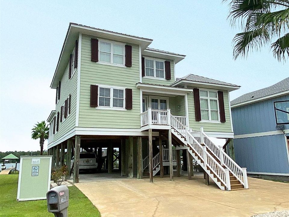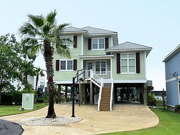 Admire this gorgeous, custom 4BED/4BA waterfront home situated on the serene Bon Secour River, offering stunning views! This multi-level home showcases many desirable features including an elevator, hurricane shutters, new interior paint (2024), large screened-in back porch, ample parking (covered & uncovered), high ceilings, granite countertops throughout, bonus living space on 2nd floor, private outdoor shower, and more. Enjoy a large, bright open floorplan, seamlessly connecting the living, kitchen, and dining space; located off the kitchen is a spacious laundry room w/ plenty of cabinet space & extra sink. The large screened back porch can be accessed through the living space and primary bedroom, all displaying vast river views. The primary suite holds a double vanity, jetted tub, separate tiled shower, large walk-in closet, water closet, and bonus sitting area in bathroom. Another bedroom and bathroom are off the living room, as well. Upstairs, enjoy a second living/bonus space w/ small wet bar, leading into hallway linking the other 2 bedrooms & bathrooms. Outside, take delight in a beautifully landscaped property w/ palm trees (courtesy of HOA), fenced-in backyard, private outdoor shower, and external storage. Along with landscaping, residents of River Pines subdivision receive irrigation, access to communal boat launch, and fishing pier (right next to home). Schedule a showing today! Buyer to verify all information during due diligence.