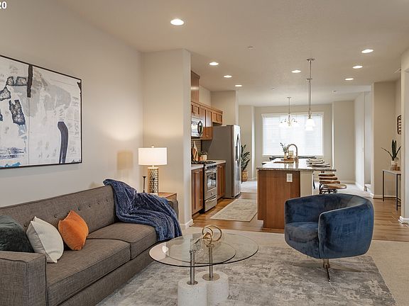 Beautiful River Terrace Townhome boasts a great open floor plan that flows into a spacious kitchen w/ a large granite island, stainless appliances, (including gas range!) & laminate wood floors--all great for entertaining! Light & bright living room has a cozy gas fireplace & leads to a balcony w/ wetland views. Master suite includes vaulted ceilings & dual vanity. Bonus "tech area" perfect for a home office. Club house, gym and pool included! See virtual tour link for 3d interactive tour!