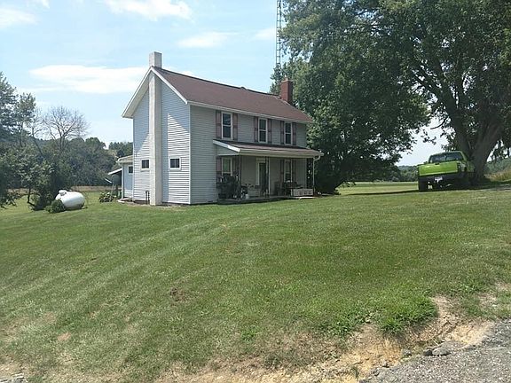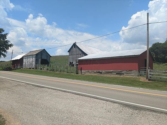 Established FARM! Over 100 ACRESExisting cows with calves on side and bred back (30 momma cows) will be included in the sale as well as the Kubota farm tractor! 2 Story Farm 1900's House, Corn Crib, Machinery Shed, Creek, Spring, Rolling Hill Views, Multiple Barns, FENCED PASTURE, new gutters on the 3 or 4 bedroom house stone foundation, 1.5 baths, Detached garage - cemented, centrally located Zanesville/Coshocton/Newark