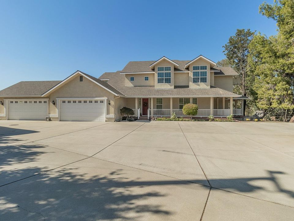 Come see this Custom Built American Classic style home on 4.32 rolling acres located just minutes outside of Fresno. There are Incredible views of the San Juaquin River Valley, Foothills, and magnificent sunsets and just a couple of minutes drive to Millerton Lake, Table Mountain Casino, and Eagle Springs Golf Course. Notice the endless potential of this multiple tiered layout where you can possibly build your shop, plant fruit trees, or create your equestrian stables, there is currently a bridle path/dirt bike path that follows next to the fence line.Walk up onto the wrap around porch and enter the home to see the large family room, open kitchen, Sunroom, and living room with a formal dinning area. The spacious modern kitchen has granite counter tops, Kitchenaid appliances, and custom cabinetry being just some of the features. Upstairs there are large bedrooms, extra laundry closet, and a drop down stairs revealing additional living space for storage or kids playroom, the master bedroom has a walk in closet its own balcony for the incredible sunset views, with an additional hobby or storage room adjoining. The master bath has an oversized tiled shower stall and a free standing tub next to a gas fireplace, and His and Hers sinks. Enjoy BBQ's off your back porch or take the party downstairs to your custom pool area with its rock waterfalls.The full 4 car garage is great for the car enthusiast and there is plenty of extra parking on the vast amount of concrete on the driveway.
