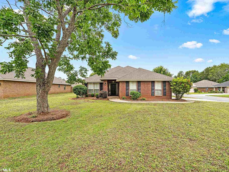 Copperwood is conveniently located close to schools, downtown, and the Foley Beach Express which allows easy transit to the white sandy beaches! This brick home is situated on a corner lot and features a split floor plan with 4 bedrooms. The kitchen is equipped with stainless appliances, breakfast area, and pantry. The living area has vaulted ceilings, and there is a formal dining room. The master is located on its own side of the home making it more private and has a large walk in closet, garden soaking tub, and separate shower. Other features include a fenced backyard, ADT security system, Nest thermostat, and side entry garage.